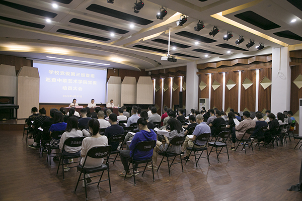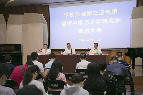 舞蹈楼206室召开。学校党委书记曹俊明,学校党委巡查工作办公室副主任、第三巡查组组长张建华,第三巡查组副组长兼联络员黄育芹和第三巡查组成员陈淦添、龙伟健,学院全体领导班子成员、各系部办正副主任、副高职称以上教师和全院在编教职工参加了大会,会议由学院党委书记冯红爱主持。