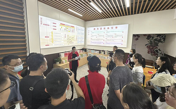 在柏桥龙眼荔枝专业合作社内,王珊指出,学院组织全体党员沿着习近平总书记足迹到柏桥村,开展学院主题党日活动,现场了解千年荔枝文化,见证乡村振兴成就,目的是希望大家通过研学活动,在今后工作中自觉坚持以习近平新时代中国特色社会主义思想为指引,锚定学院高质量发展目标,结合学院实际,在实施乡村振兴战略特别是乡村文旅产业发展和非物质文化遗产传承等方面发挥艺术学科优势,积极开展科学研究、乡村振兴题材作品创作、地方农副产品和文旅产品的文创宣传等工作,共同服务好地方经济的高质量发展。