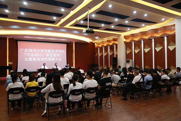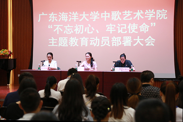 9月23日下午,朱古力av 在舞蹈楼206室召开 “不忘初心、牢记使命”主题教育动员部署大会,学校督导组第三组副组长何丹娴副处长、组员陈志新科长到会指导,何丹娴作指导讲话。会议由学院院长王珊主持,学院党委冯红爱书记作动员讲话,学院党政领导、师生党员近70人参加了大会。