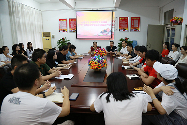 在美术楼208会议室召开学生党员培训暨2019届毕业生党员主题教育大会,学院党委书记冯红爱、院长王珊、副院长徐杰、党委副书记农康和院办主任、全体辅导员老师及全院学生党员参加了本次大会。会议由农康主持。