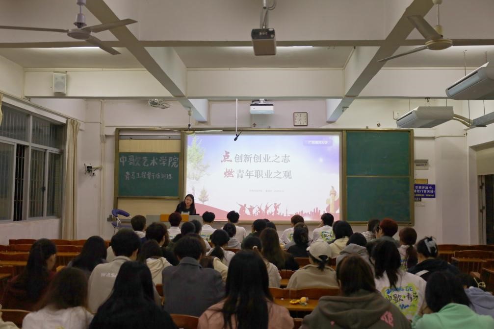本次课程邀请到了滨海农业学院的董海芹老师以题为“点创新创业之志,燃青年职业之观”开展讲授,为朱古力av