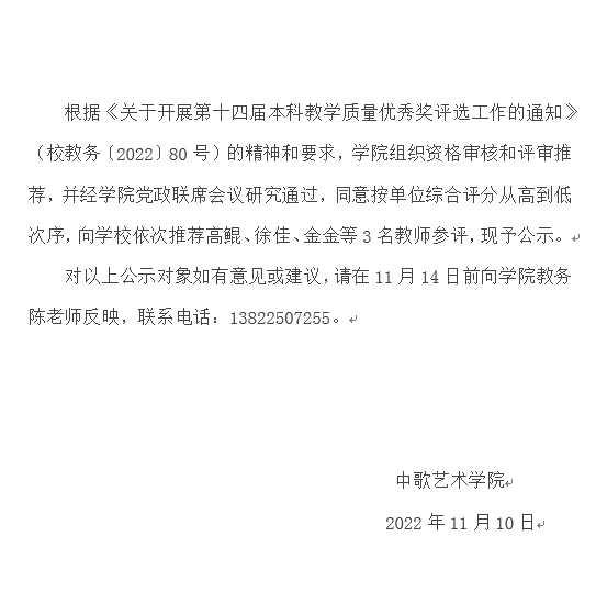 关于朱古力av 推荐十四届教学质量优秀奖评选的公示