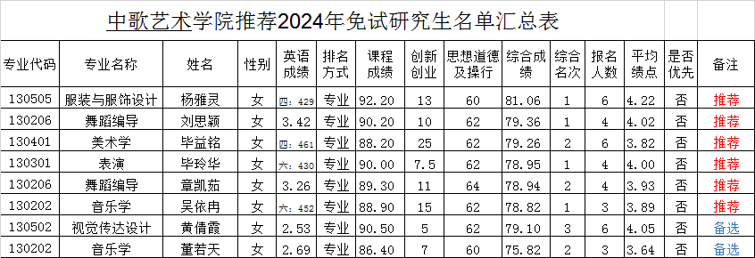 推荐优秀应届本科毕业生免试攻读研究生遴选细则》,学院组织了2024年优秀应届毕业生免试攻读研究生遴选推荐工作。经学生报名、资格审查、综合评定和学院推免生遴选工作小组审查通过,杨雅灵等6名学生为拟推荐对象,黄倩霞等2名学生为备选对象,现予以公示。