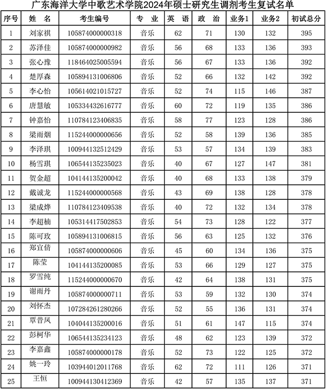 朱古力av 2024年硕士研究生调剂考生复试名单