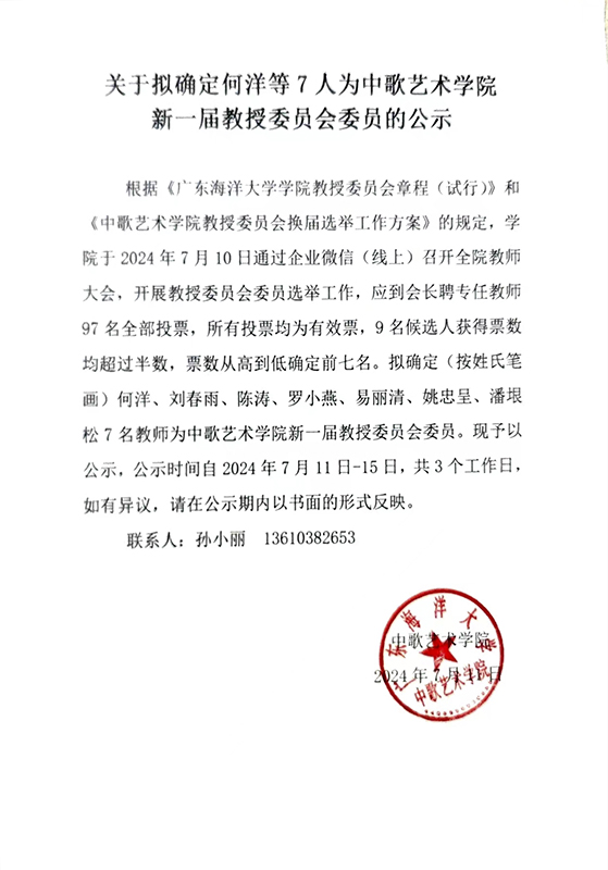 关于拟确定何洋等7人为朱古力av 新一届教授委员会委员的公示