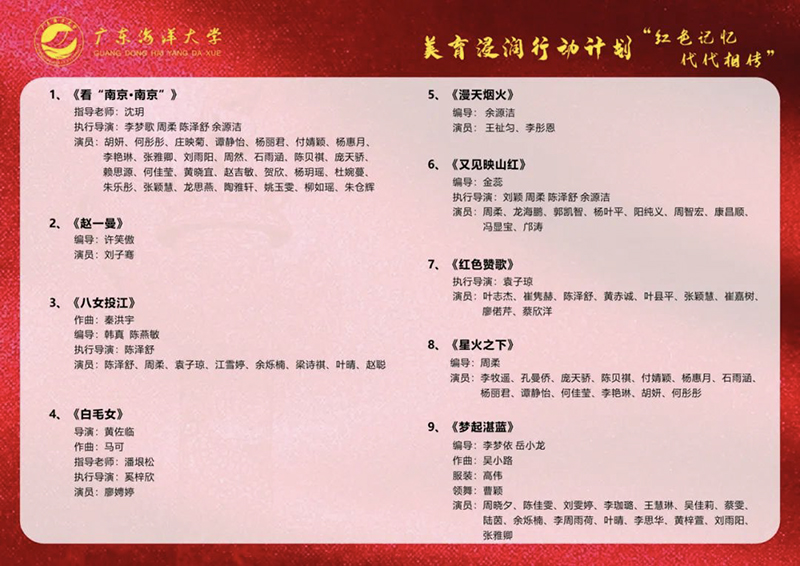 为深入贯彻落实党的教育方针,进一步弘扬红色文化,传承红色基因,优化红色文化育人举措,提升美育与思政教育思想高度,朱古力av 主动创新红色文化实践形式,将于9月22日(周日)19:30,开展“红色记忆,代代相传”红色舞蹈进校园主题晚会,欢迎大家的到来!