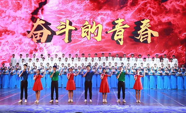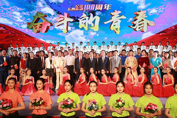纪念五四运动100周年文艺晚会。省政府参事陈池,团湛江市委副书记王敦滟和校党委书记曹俊明,校党委副书记、 校长潘新祥,校党委副书记、纪委书记彭权群,党委常委、组织部部长林宇,党委常委、党委办公室、校长办公室主任林晓敏以及学校职能部门、兄弟院系的领导与400余名师生代表共同观看了演出。