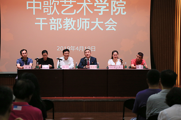 在舞蹈楼206室召开干部教师大会,宣布学院新一届院长王珊教授的任命决定。学校党委书记曹俊明出席会议并作讲话,党委常委、校党委组织部部长林宇宣布学校党委任免决定,学院全体教职工参加了会议,会议由学院党委书记冯红爱主持。