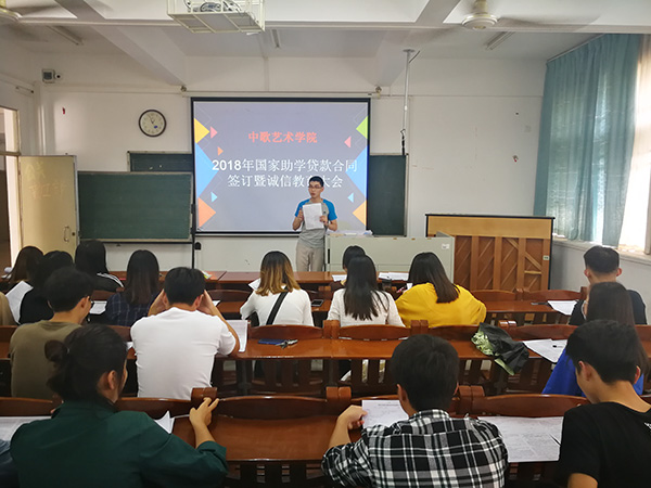 在美术楼306室开展国家助学贷款合同签订暨诚信教育活动,会议由谢维杨老师主持,学院2018年高校助学贷款全体学生参加。