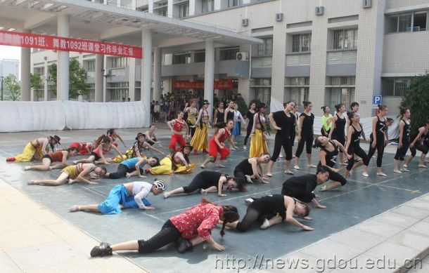汇演在美术楼前的露天广场举行,现场虽然没有绚丽的舞台灯光,没有震撼的背景音效,没有华丽的演出服饰,但却丝毫影响不了同学们饱满的演出热情。41名同学别出心裁的将四年来学到的文化知识、表演技能和艺术情操全部浓缩在12个富具海洋特色、充满青春活力和独具民族风情的舞蹈节目中,同学们大胆新颖的创意、优美娴熟的舞姿和丰富多样的表情赢得了在座领导、老师和同学们的阵阵掌声。