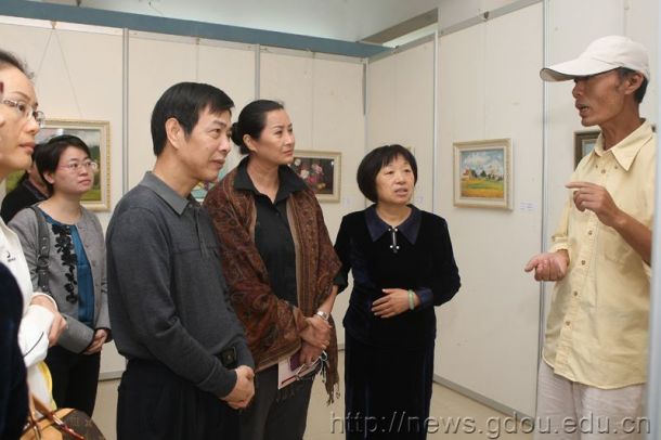 校领导在绘画作品展前听取张昆老师的介绍