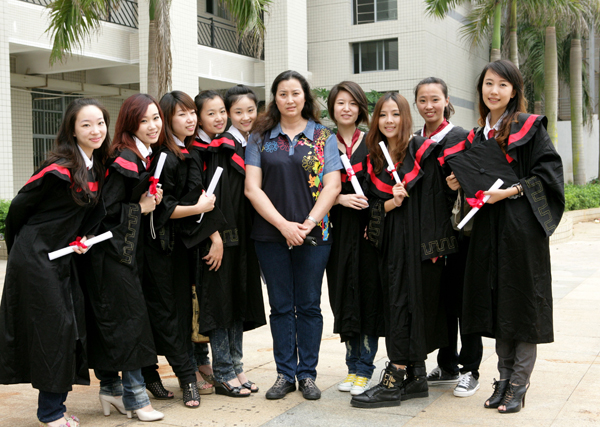 同学们簇拥着王珊院长,留个漂亮的笑容给母校。