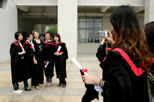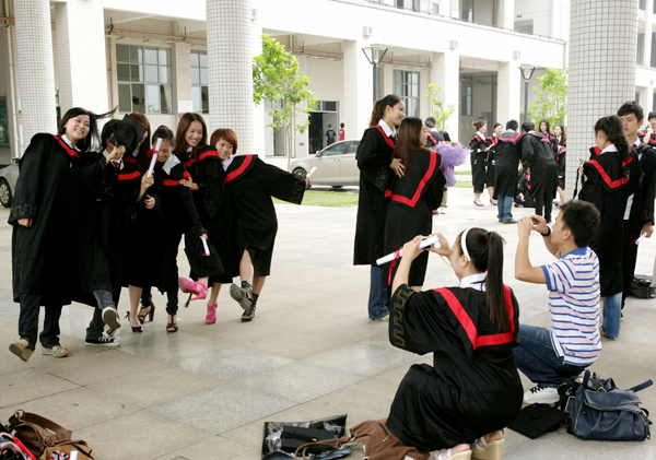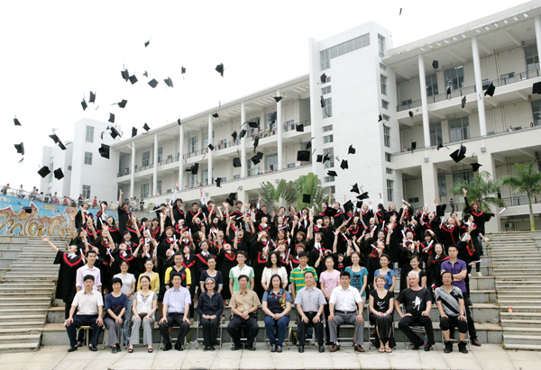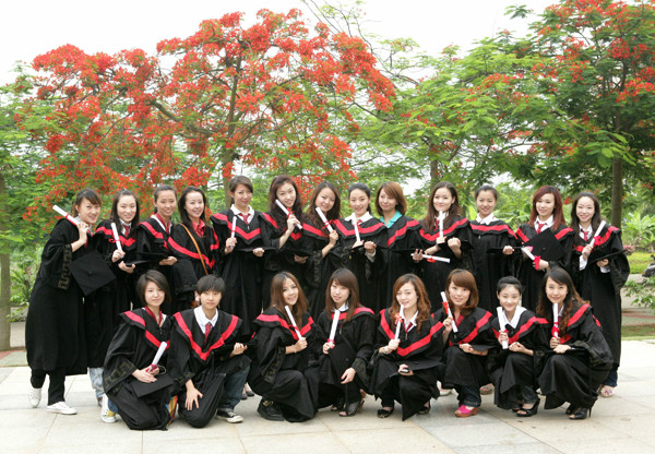 | 照一张毕业合照,是同学们必定的节目。大家穿上学士服,整整齐齐,精神饱满,然后恭恭敬敬的把学校领导和老师请来合照。同学之间也来合拍一张,把那高大的教学楼照下,还有那清粼粼的湖水,和那四季常绿的树木、五颜六色的花朵。校园里处处洋溢着青春笑容,释放出浓浓的师生情谊。这一天,这一幕,注定将会永远的储存于学子心中。 |