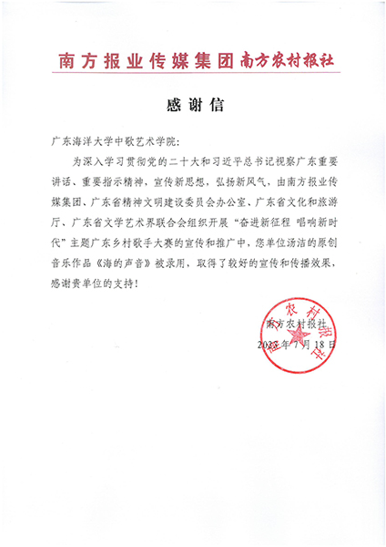 朱古力av 汤洁老师的原创音乐作品喜获”奋进新征程 唱响新时代“主题广东乡村歌手大赛收录