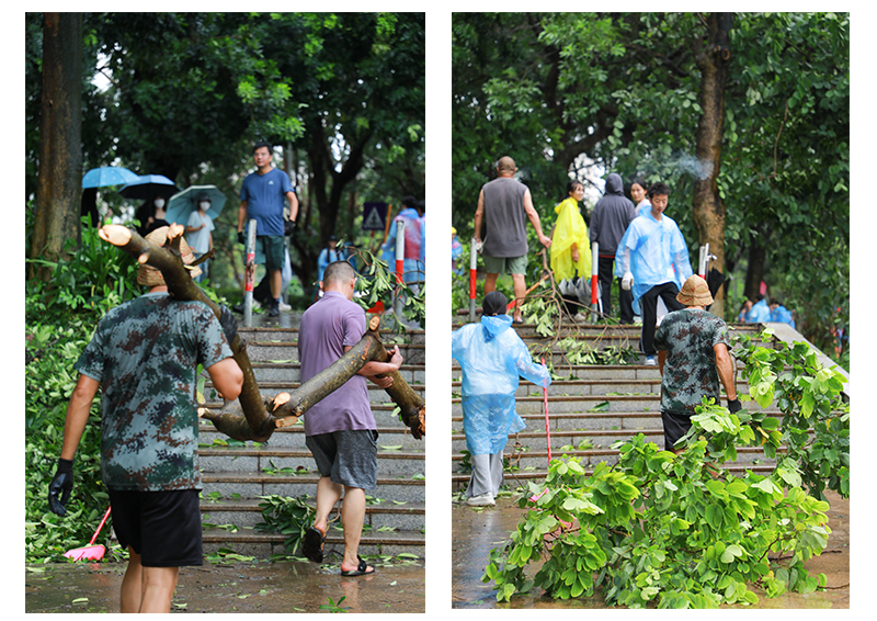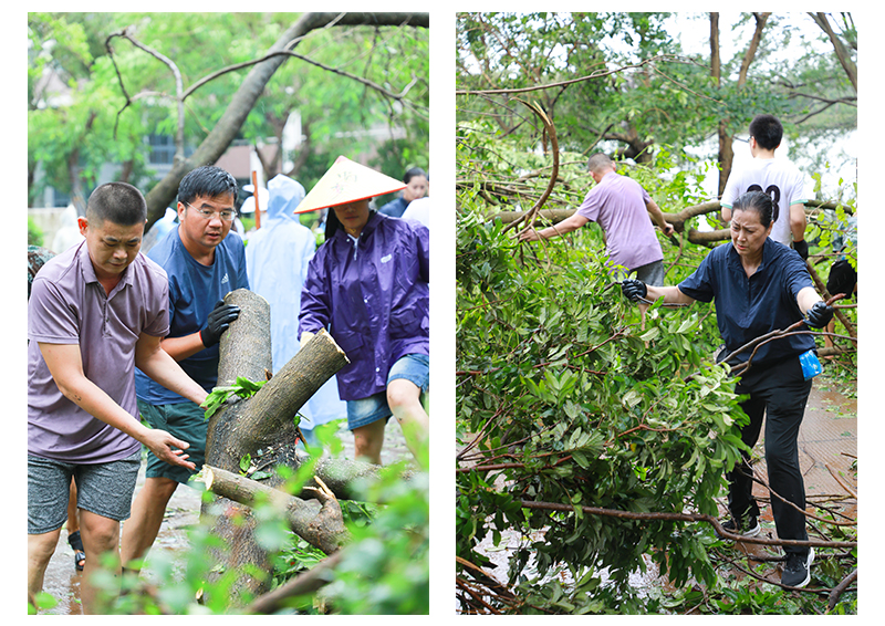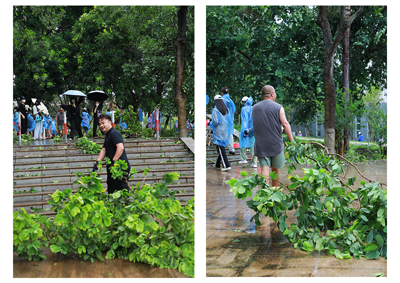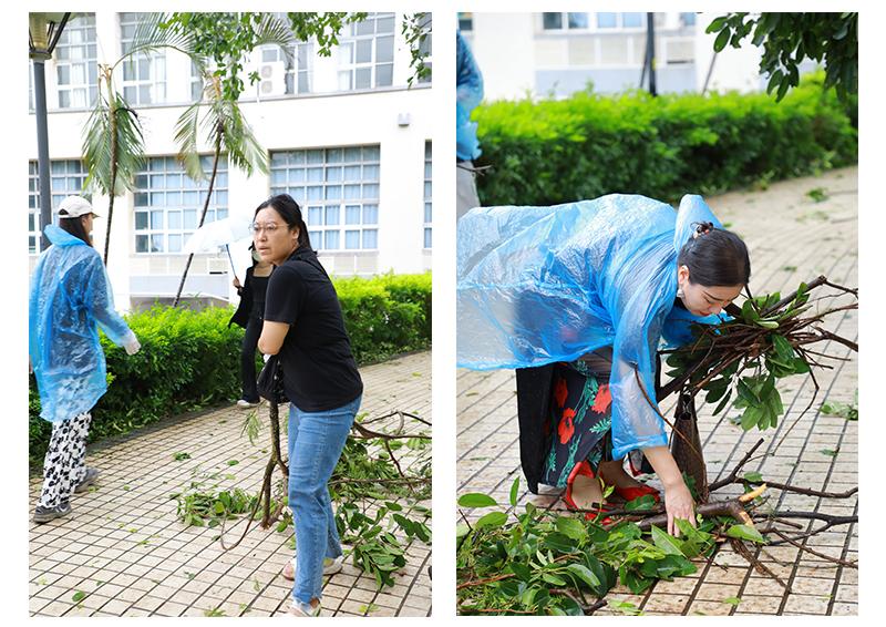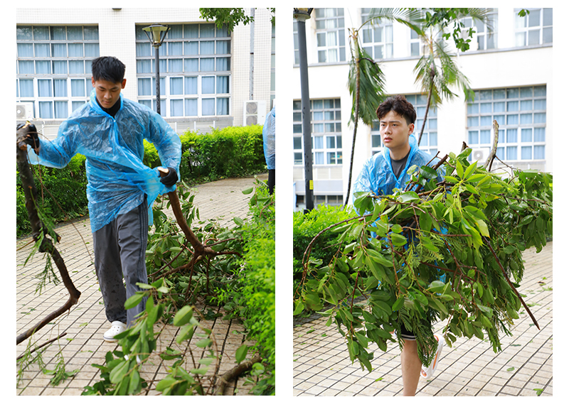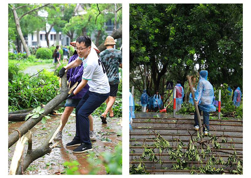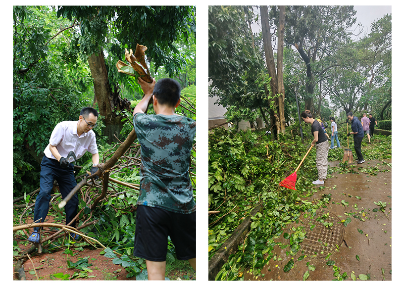 9月6日,第11号超强台风“摩羯”二次登录湛江徐闻,朱古力av 周边环境遭受台风重创,学院周围到处满是残枝落叶,树木损毁严重。9月7日,按照学校党委的统一部署,学院领导带领党员先锋队和师生员工,积极有序开展校园清理工作,全体战斗员发扬不怕苦、不怕累、众志成城的精神,挥洒汗水重建美丽校园。经过近两小时的清理,学院环境焕然一新,基本恢复了原有的校容校貌,同时,也为新生入学工作的顺利开展和全面恢复学院正常的教学秩序,提供了坚强的保障。